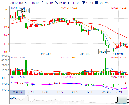 今 開: 16.84 成交量: 4143手 振 幅: 1.87% 最 高: 17.16 成交額: 704.06萬(wan) 換手率: 0.35% 最 低: 16.84 總市值: 72.62億(yi) 市淨率: 5.18 昨 收: 17.15 流通市...