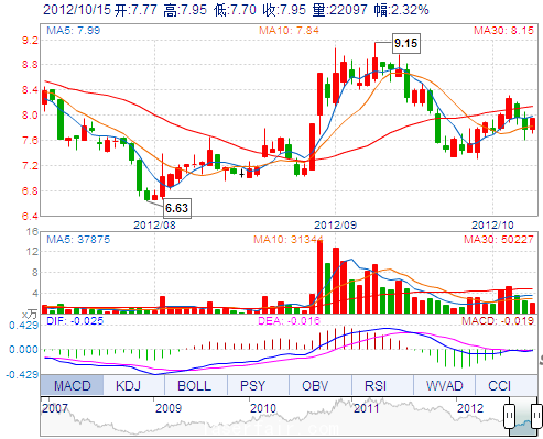 | 最 低: | 7.70 | 總市值: | 15.84億(yi) | 市淨率: | 3.23 |