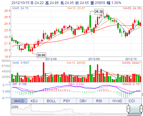 | 今 開: | 24.22 | 成交量: | 25858手 | 振 幅: | 3.29% |