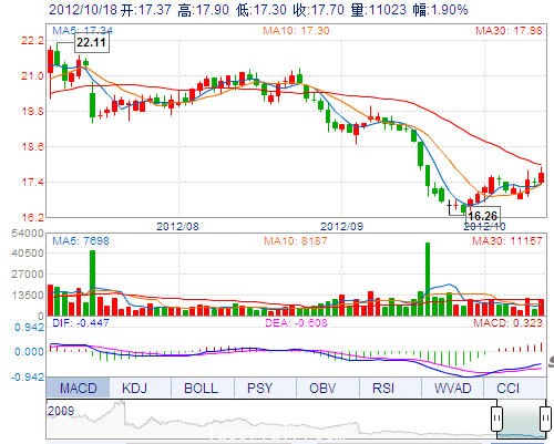 | 今 開: | 17.37 | 成交量: | 11023手 | 振 幅: | 3.45% |