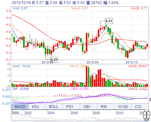 | 今 開: | 5.57 | 成交量: | 28702手 | 振 幅: | 2.70% |