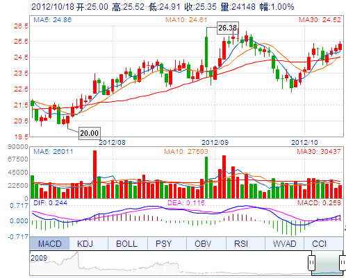 | 昨 收: | 25.10 | 流通市值: | 46.34億(yi) | 市盈率TTM: | 38.56 |