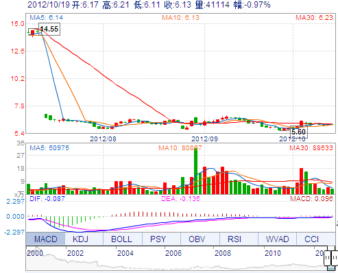 | 最 低: | 6.11 | 總市值: | 54.63億(yi) | 市淨率: | 1.05 |