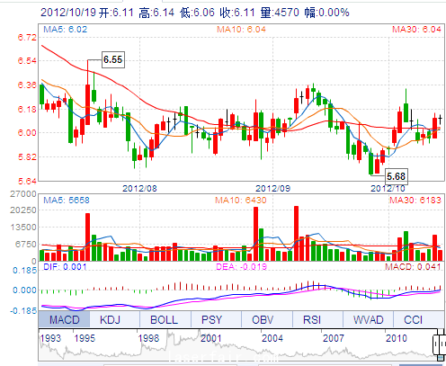 | 今 開: | 6.11 | 成交量: | 4570手 | 振 幅: | 1.31% |