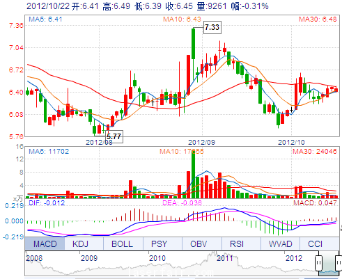 今 開: 6.41 成交量: 9261手 振 幅: 1.55% 最 高: 6.49 成交額: 597.58萬(wan) 換手率: 0.34% 最 低: 6.39 總市值: 18.38億(yi) 市淨率: 3.06 昨 收: 6.47 流通市值: ...