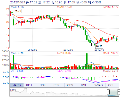 今 開: 17.02 成交量: 4505手 振 幅: 1.52% 最 高: 17.22 成交額: 770.23萬(wan) 換手率: 0.38% 最 低: 16.96 總市值: 72.84億(yi) 市淨率: 5.20 昨 收: 17.11 流通市...