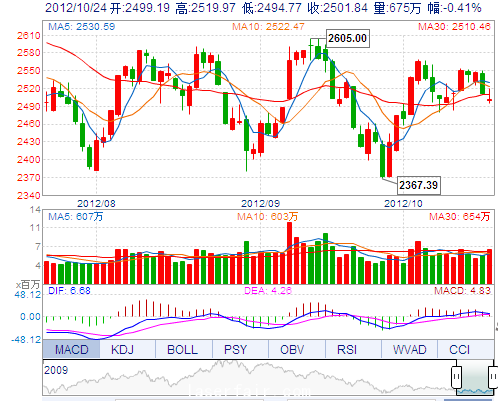 今 開: 2499.19 最 高: 2519.97 最 低: 2494.77 振 幅: 1.00% 昨 收: 2512.26 成交量: 6750323手 成交額: 537448.48萬(wan) 換手率: --