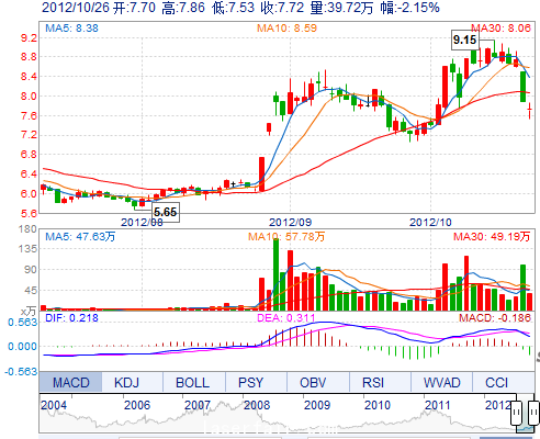 | 最 低: | 7.53 | 總市值: | 80.63億(yi) | 市淨率: | 2.49 |