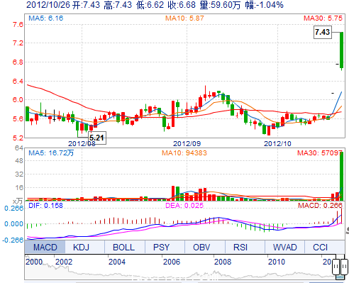 | 最 高: | 7.43 | 成交額: | 41030.04萬(wan) | 換手率: | 13.65% |