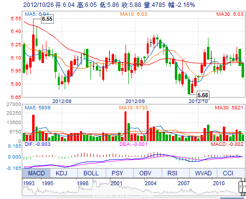 今 開: 6.04 成交量: 4785手 振 幅: 3.16% 最 高: 6.05 成交額: 284.81萬(wan) 換手率: 0.28% 最 低: 5.86 總市值: 10.21億(yi) 市淨率: 2.53 昨 收: 6.01 流通市值: ...