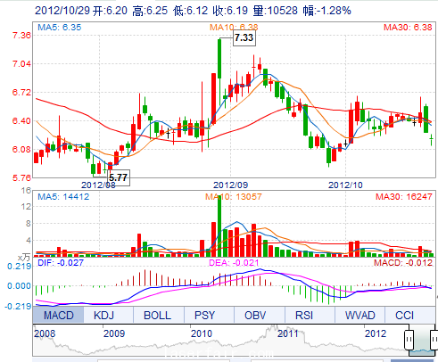 | 今 開: | 6.20 | 成交量: | 10528手 | 振 幅: | 2.07% |