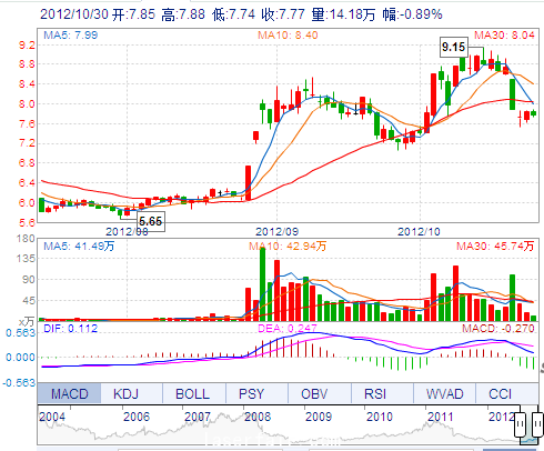| 最 低: | 7.74 | 總市值: | 81.15億(yi) | 市淨率: | 2.51 |