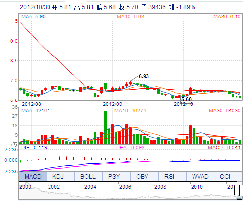 | 昨 收: | 5.81 | 流通市值: | 50.79億(yi) | 市盈率TTM: | 34.01 |