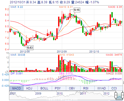 | 今 開: | 8.34 | 成交量: | 24623手 | 振 幅: | 2.86% |