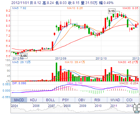 | 昨 收: | 8.11 | 流通市值: | 77.10億(yi) | 市盈率TTM: | 13.38 |