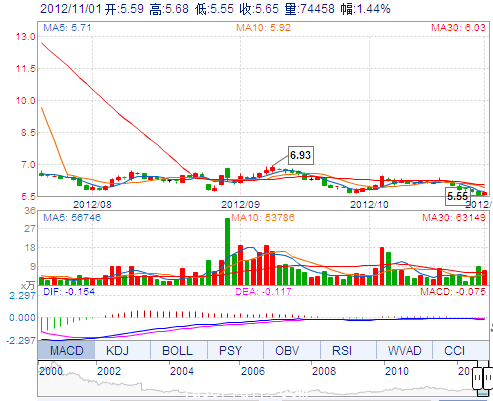 | 昨 收: | 5.57 | 流通市值: | 50.35億(yi) | 市盈率TTM: | 33.71 |