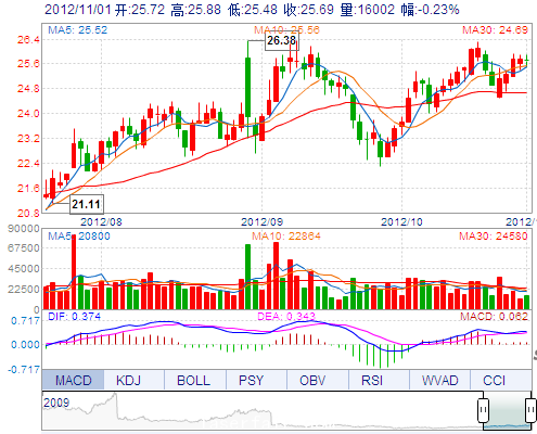 今 開: 25.72 成交量: 16002手 振 幅: 1.55% 最 高: 25.88 成交額: 4117.29萬(wan) 換手率: 0.85% 最 低: 25.48 總市值: 76.47億(yi) 市淨率: 5.87 昨 收: 25.75 流通...