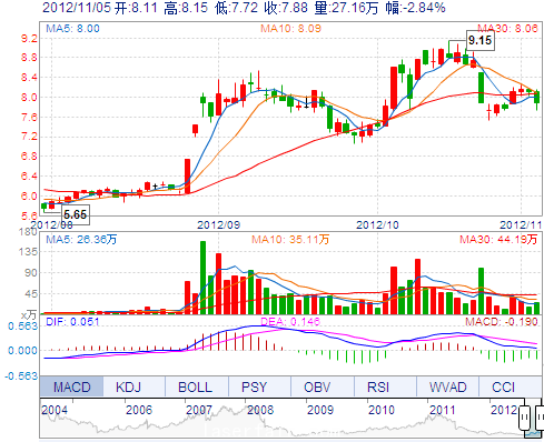 | 今 開: | 8.11 | 成交量: | 271590手 | 振 幅: | 5.30% |