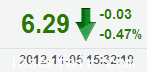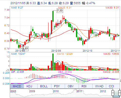 | 今 開: | 6.33 | 成交量: | 5655手 | 振 幅: | 0.95% |