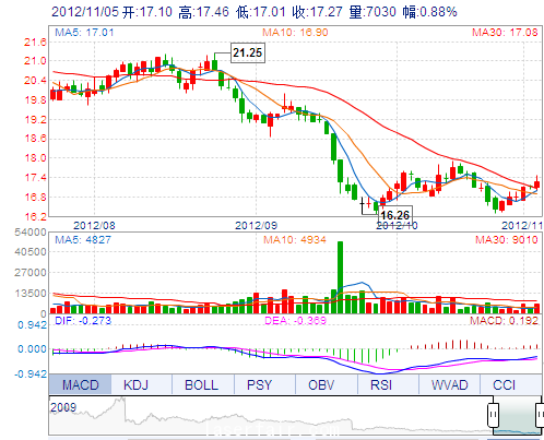 | 今 開: | 17.10 | 成交量: | 7030手 | 振 幅: | 2.63% |