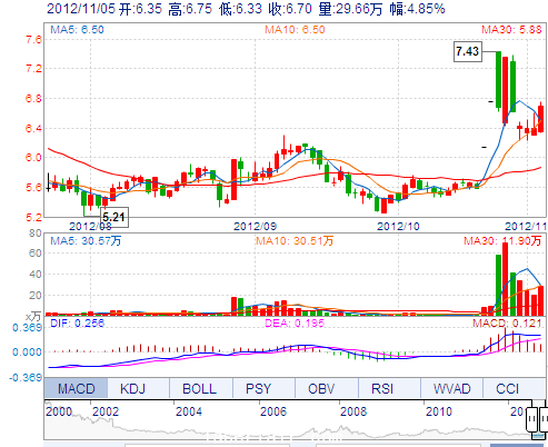 | 今 開: | 6.35 | 成交量: | 296597手 | 振 幅: | 6.57% |