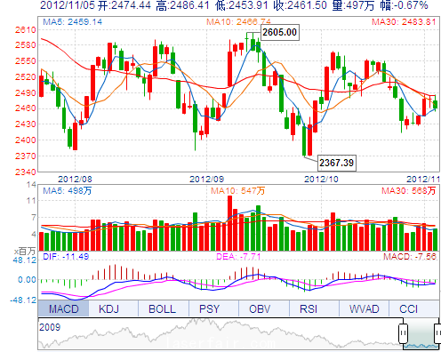 | 昨 收: | 2478.13 | 成交量: | 4966353手 |