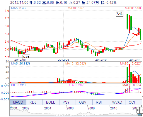 | 最 低: | 6.10 | 總市值: | 27.39億(yi) | 市淨率: | 2.03 |