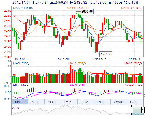 | 昨 收: | 2449.01 | 成交量: | 4928727手 |