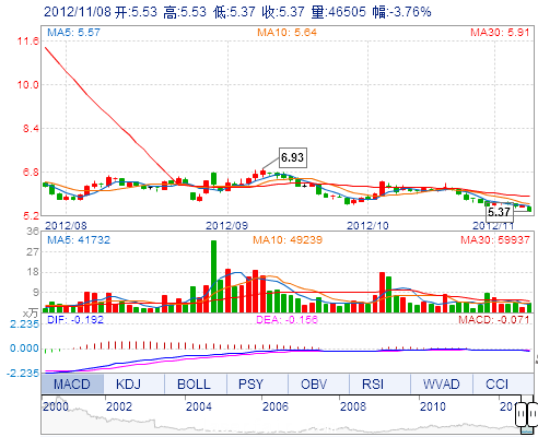 | 最 低: | 5.37 | 總市值: | 47.85億(yi) | 市淨率: | 1.83 |