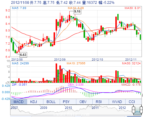 | 今 開: | 7.75 | 成交量: | 16371手 | 振 幅: | 4.20% |