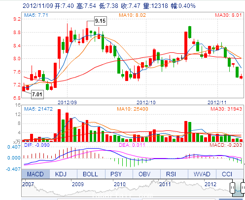 | 今 開: | 7.40 | 成交量: | 12318手 | 振 幅: | 2.15% |