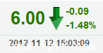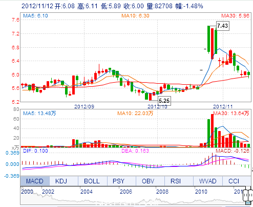 | 昨 收: | 6.09 | 流通市值: | 26.21億(yi) | 市盈率TTM: | 78.12 |