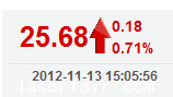| 今 開: | 25.48 | 成交量: | 28143手 | 振 幅: | 1.84% |
