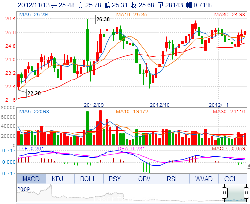 今 開: 25.48 成交量: 28143手 振 幅: 1.84% 最 高: 25.78 成交額: 7204.66萬(wan) 換手率: 1.50% 最 低: 25.31 總市值: 76.44億(yi) 市淨率: 5.86 昨 收: 25.50 流通...
