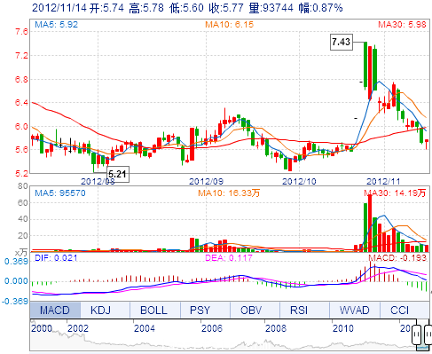 | 今 開: | 5.74 | 成交量: | 93743手 | 振 幅: | 3.15% |