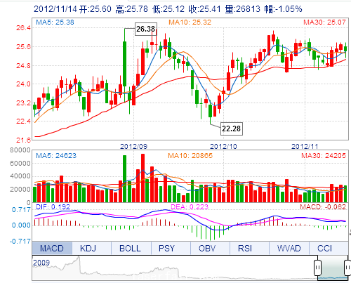 | 今 開: | 25.60 | 成交量: | 26812手 | 振 幅: | 2.57% |