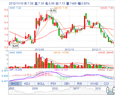 | 今 開: | 7.08 | 成交量: | 7488手 | 振 幅: | 2.83% |