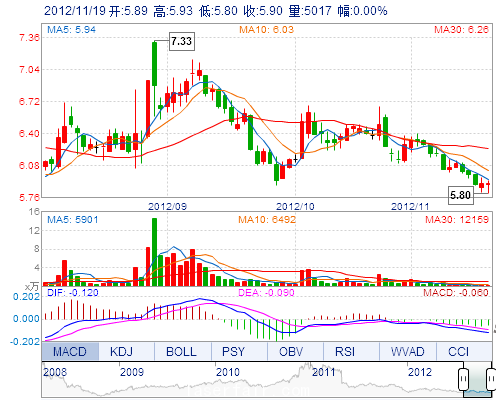 | 今 開: | 5.89 | 成交量: | 5017手 | 振 幅: | 2.20% |