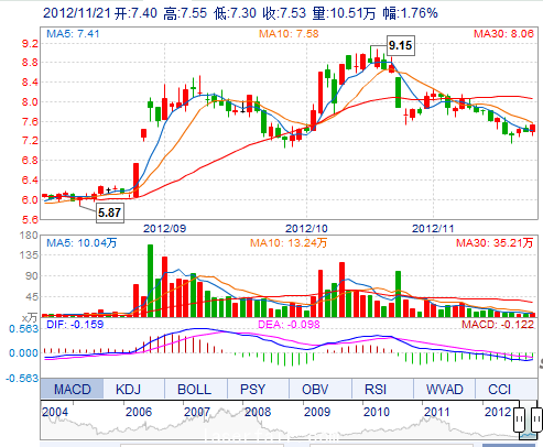 今 開: 7.40 成交量: 105133手 振 幅: 3.38% 最 高: 7.55 成交額: 7832.37萬(wan) 換手率: 1.11% 最 低: 7.30 總市值: 78.64億(yi) 市淨率: 2.43 昨 收: 7.40 流通市值...