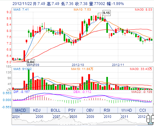 | 最 低: | 7.36 | 總市值: | 77.08億(yi) | 市淨率: | 2.38 |