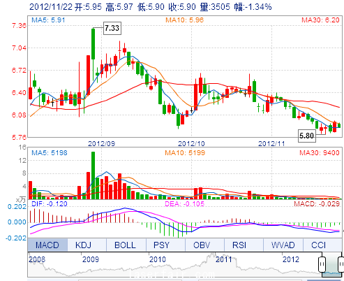 | 今 開: | 5.95 | 成交量: | 3505手 | 振 幅: | 1.17% |