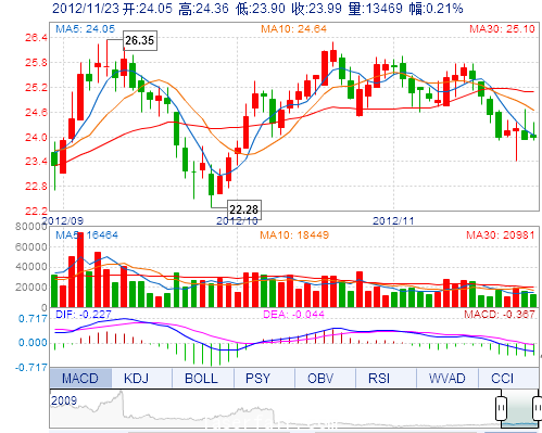 | 今 開: | 24.05 | 成交量: | 13468手 | 振 幅: | 1.92% |