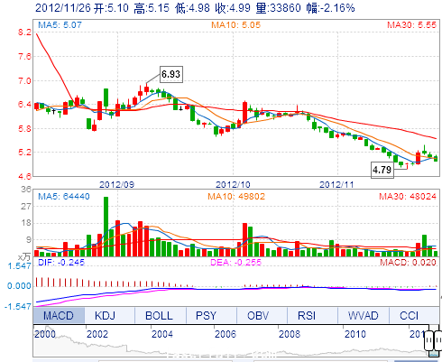 | 最 低: | 4.98 | 總市值: | 44.47億(yi) | 市淨率: | 1.70 |