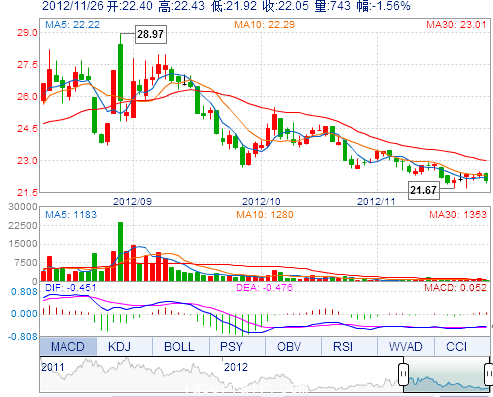 | 最 低: | 21.92 | 總市值: | 7.72億(yi) | 市淨率: | 2.69 |