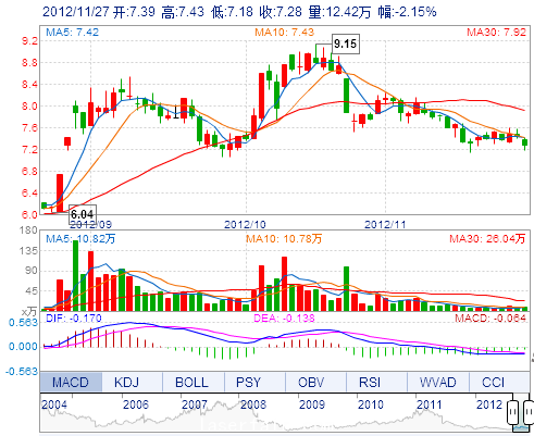 今 開: 7.39 成交量: 124184手 振 幅: 3.36% 最 高: 7.43 成交額: 9061.64萬(wan) 換手率: 1.31% 最 低: 7.18 總市值: 76.03億(yi) 市淨率: 2.35 昨 收: 7.44 流通市值...