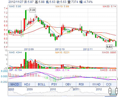 今 開: 5.87 成交量: 7374手 振 幅: 4.23% 最 高: 5.88 成交額: 422.69萬(wan) 換手率: 0.27% 最 低: 5.63 總市值: 16.05億(yi) 市淨率: 2.62 昨 收: 5.91 流通市值: ...