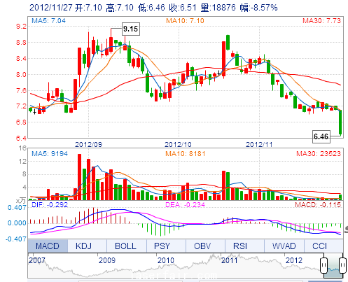 | 最 低: | 6.46 | 總市值: | 12.97億(yi) | 市淨率: | 2.61 |