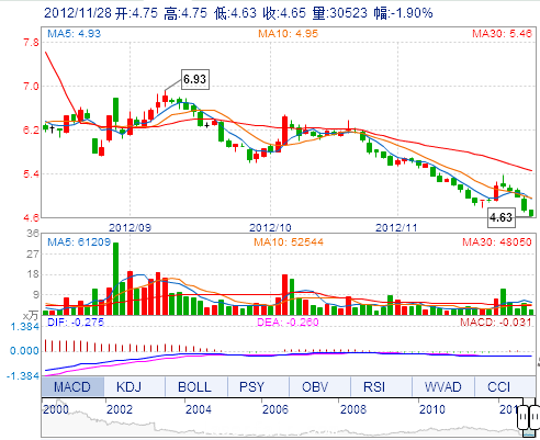 | 今 開: | 4.75 | 成交量: | 30522手 | 振 幅: | 2.53% |