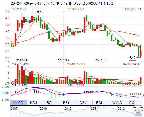| 今 開: | 6.49 | 成交量: | 46265手 | 振 幅: | 11.37% |