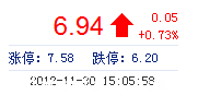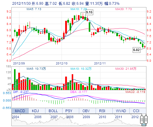 | 今 開: | 6.90 | 成交量: | 11.35萬(wan) 手 | 振 幅: | 2.90% |